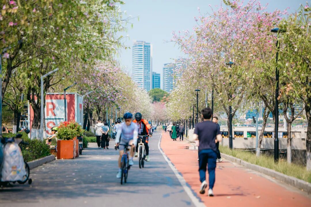 这不仅是体能的挑战,更是一场穿越城市春色的踏青之旅。其中南海线的三大赏花点:千灯湖活水公园、千灯湖三期荟芳山 、桂城滨江公园,迎来最佳观赏期。打卡拍照、踏青赏春刚刚好!